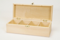 Houten thee doos met 4 vakken: 27x10,5x8 cm