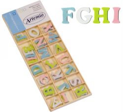 Houten doos met alle letters (x3). Pastel kleuren