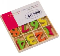 Houten doosje met alle cijfers. Elk cijfer 3x totaal 36 stuks